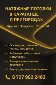 ![]() ![]() ![]() ![]() ![]() ![]() ![]() | тел. +77079822462АвторНатяжные потолки в Караганде и пригороде Красиво. Надёжно. С душой. Предлагаем профессиональную установку натяжных потолков в квартирах, домах и коммерческих помещениях по городу Караганда и ближайшим пригородам. Работаем аккуратно, без лишней суеты и с вниманием к деталям — чтобы результат радовал вас долгие годы. Что мы предлагаем: * Все виды натяжных потолков: глянец, мат, сатин * Современные решения для любого интерьера * Качественные материалы и проверенные технологии * Чистый монтаж без пыли и повреждений Почему выбирают нас: * Бесплатный замер и консультация * Работаем по Караганде и спутникам * Быстрое выполнение заказов * Аккуратность, надёжность и честный подход Поможем подобрать оптимальный вариант под ваш интерьер и бюджет. Сделаем потолок, который подчеркнёт стиль помещения и создаст ощущение уюта. Телефон для консультации и записи на замер указан в контактах. г. Караганда обновлено Сегодня